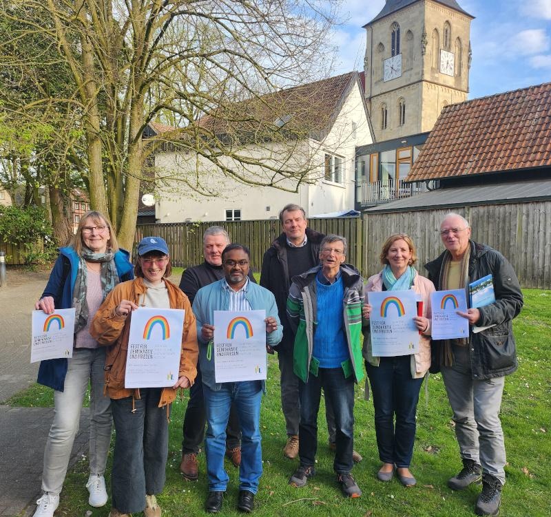 Bürgermeister Dr. Dietmar Thönnes wird gegen 15 Uhr das Demokratie- und Friedensfest mit einer Rede eröffnen. Der Nottulner Bürgermeister ist seit vielen Jahren auch „Mayor for Peace“ (Bürgermeister für den Frieden). Und dann eröffnet auch schon Anna Voigt, Singer-Songwriterin aus Nottuln, den musikalischen Teil. Mit akustischer Gitarre und einer präsenten Stimme singt sie Popsongs – aktuelle und Evergreens. Immer wieder wird Anna Voigt die Bühne betreten und ihre Gitarre und ihre Stimme erklingen lassen. Auch der Evangelische Kirchenchor wird auftreten. Aus Darup kommt das Gesangsduo Gaby und Suit, die mit Gitarre und Querflöte bekannte und weniger bekannte Friedenslieder singen werden. Die in Havixbeck und Nottuln gegründeten „Omas gegen rechts“ werden sich mit einem Sketch vorstellen. Das Ehepaar Keimburg wird von ihrer Spendenwanderung zugunsten der Organisation „Pro Peace“ berichten.